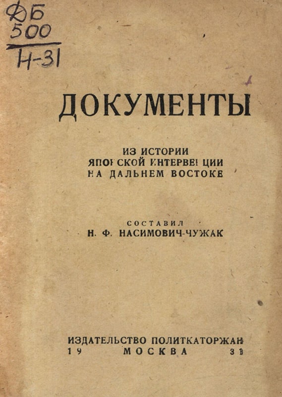 Документы из истории японской интервенции на Дальнем Востоке 1918-1922 гг. Москва, 1931.