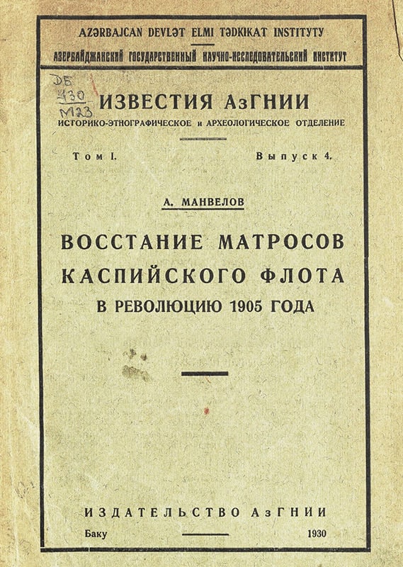 Манвелов А. Восстание матросов Каспийского флота в революцию 1905 года. Баку, 1930.