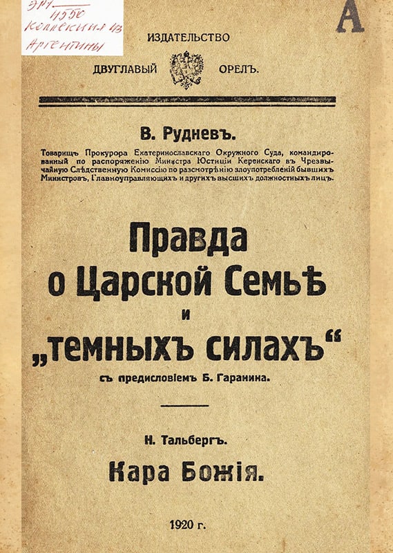 Руднев В. М. Правда о царской семье и «темных силах». Берлин, 1920.