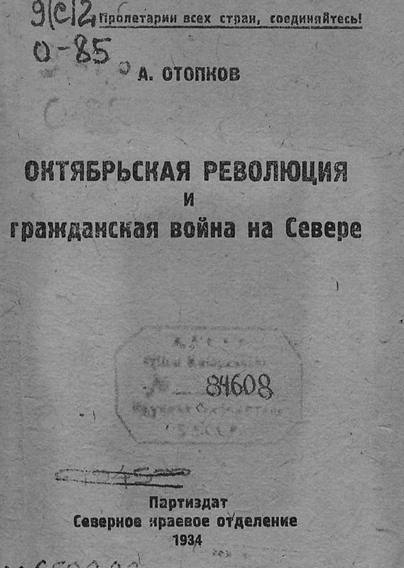 Отопков А. Октябрьская революция и гражданская война на Севере. Февраль и Октябрь на Сухоне. Архангельск, 1934.