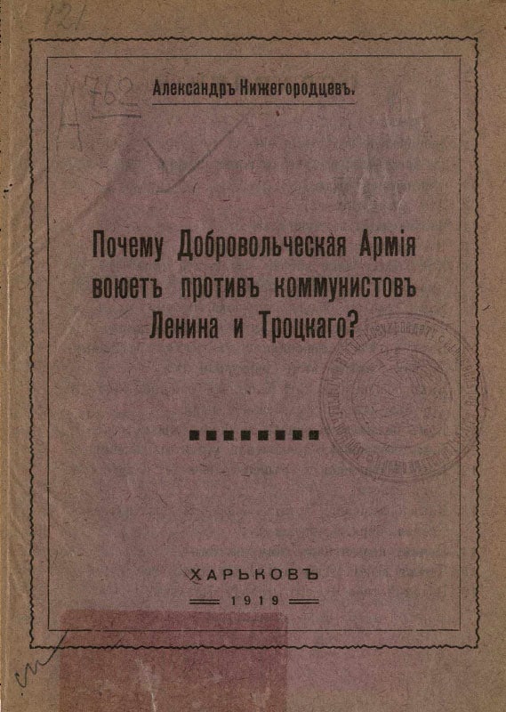 Нижегородцев А. Почему Добровольческая Армия воюет против коммунистов, Ленина и Троцкого? Харьков, 1919.