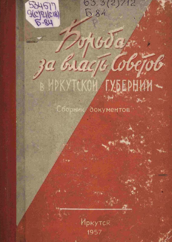Борьба за власть Советов в Иркутской губернии (октябрь 1917 г. - июль 1918 г.) Иркутск, 1957.