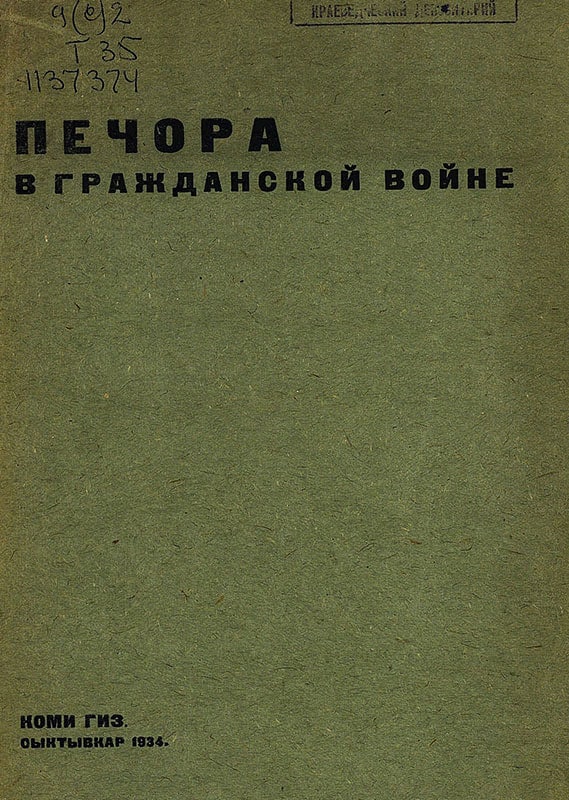 В частности, по обширному Печорскому Краю, где классовая борьба протекала в чрезвычайно острых формах, где власть несколько раз переходила из рук белых к красным и обратно, нет шока ни одной работы, освещающей события в этом крае. Полное отсутствие сведений по истории гражданской войны на Печоре позволило взяться за эту работу, она выросла из доклада на историко-этнографической Секции Московского отделения о-ва изучения Коми края в начале 1931 г.
