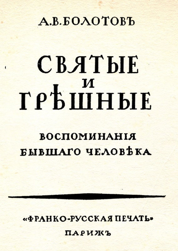 Болотов А. В. Святые и грешные. Воспоминания бывшего человека. Париж, 1924.