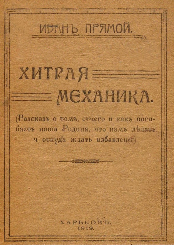 Прямой И. Хитрая механика. Рассказ о том, отчего и как погибает наша Родина, что нам делать и откуда ждать избавления. Харьков, 1919.