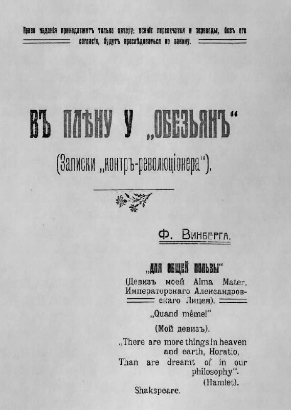 Винберг Ф. В. В плену у обезьян. Записки контрреволюционера. Киев, 1918.