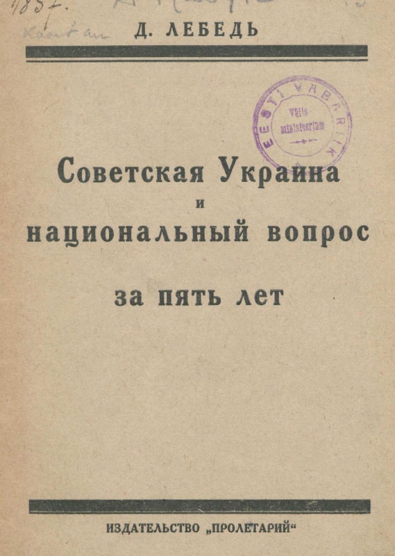 Лебедь Д. З. Советская Украина и национальный вопрос за пять лет. Харьков, 1924.