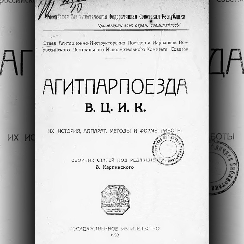 Агитпарпоезда ВЦИК. Их история, аппарат, методы и формы работы. Москва, 1920.