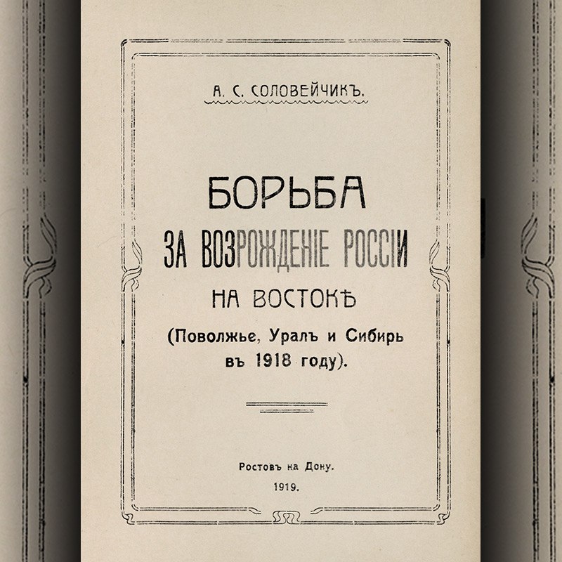 Соловейчик А. С. Борьба за возрождение России на Востоке. Поволжье, Урал и Сибирь в 1918 году. Ростов-на-Дону, 1919.