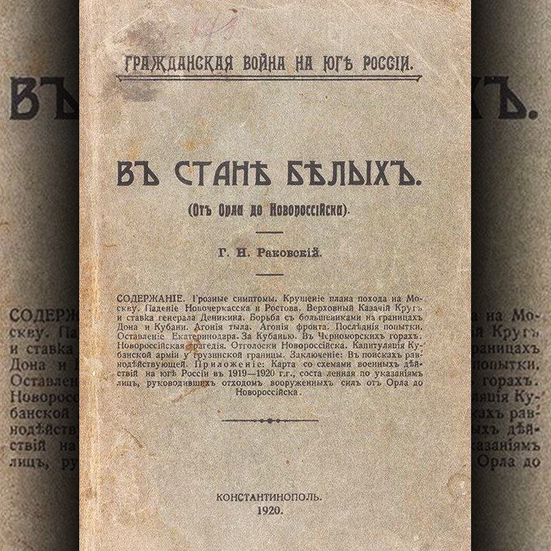 Раковский Г. Н. В стане белых. От Орла до Новороссийска. Константинополь, 1920.