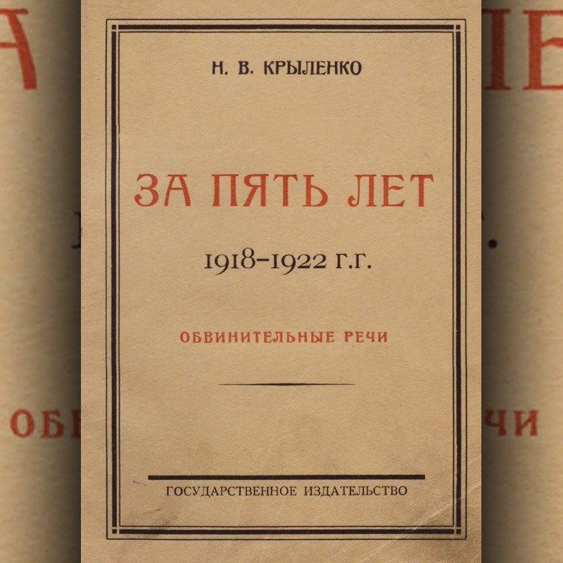 Крыленко Н. В. За пять лет. 1918-1922 гг. Обвинительные речи. Москва, Петроград, 1923.