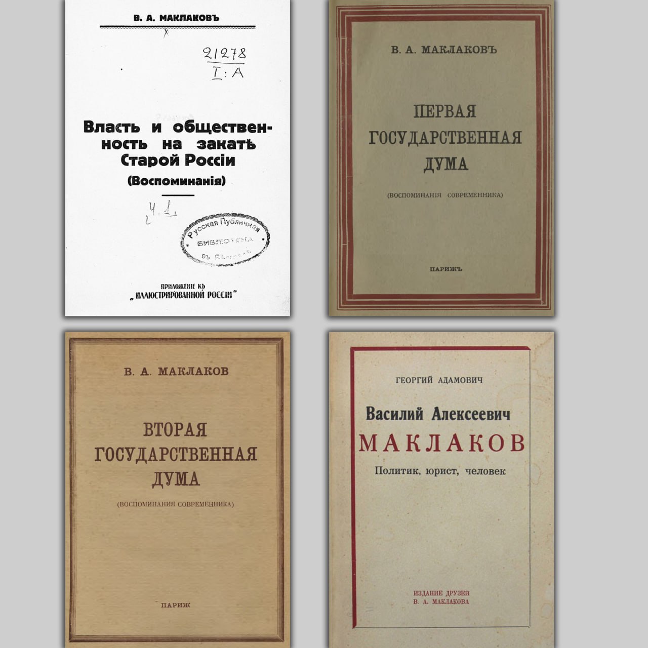Адамович Г. В. Василий Алексеевич Маклаков. Политик, юрист, человек. Париж, 1959.
