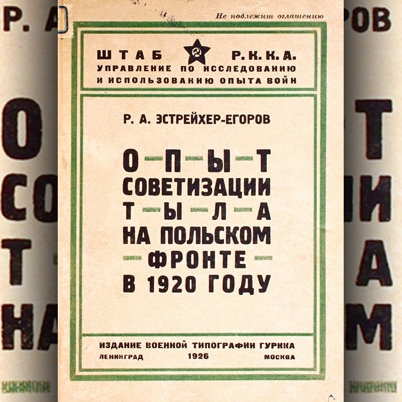 Эстрейхер-Егоров Р. А. Опыт советизации тыла на Польском фронте в 1920 году. Москва, Ленинград, 1926.