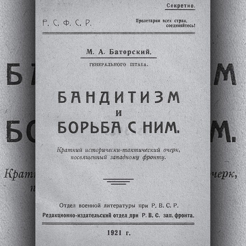 Баторский М. А. Бандитизм и борьба с ним: краткий исторически-тактический очерк, посвященный Западному фронту. Смоленск, 1921.