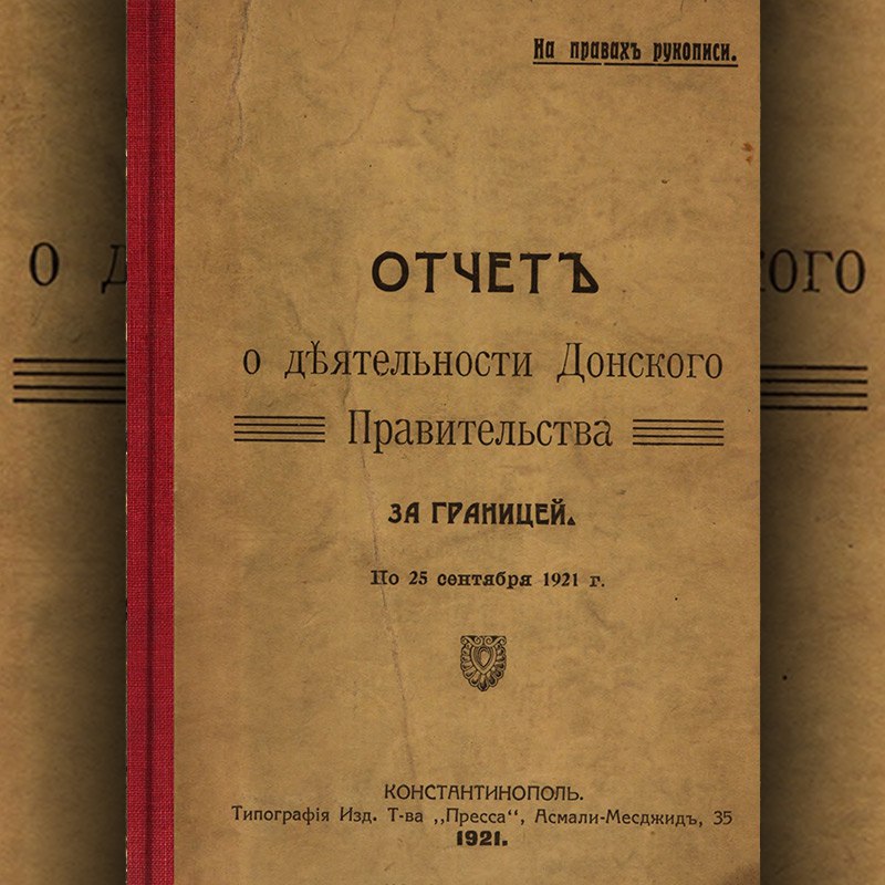 Отчет о деятельности Донского правительства за границей по 25 сентября 1921 г. Константинополь, 1921.