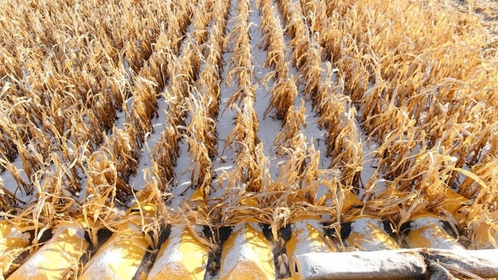 В Оренбургской области убрали урожай беспилотным комбайном на снегу | cnews