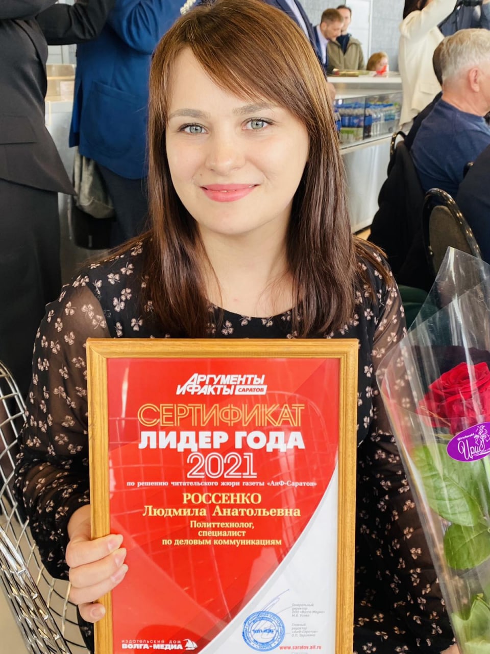 Делюсь новостями из личной жизни: 6 апреля получила награду в конкурсе «Лидер года-2021». Победители определялись читателями газеты «АиФ-Саратов», так что это вдвойне приятно 😃
