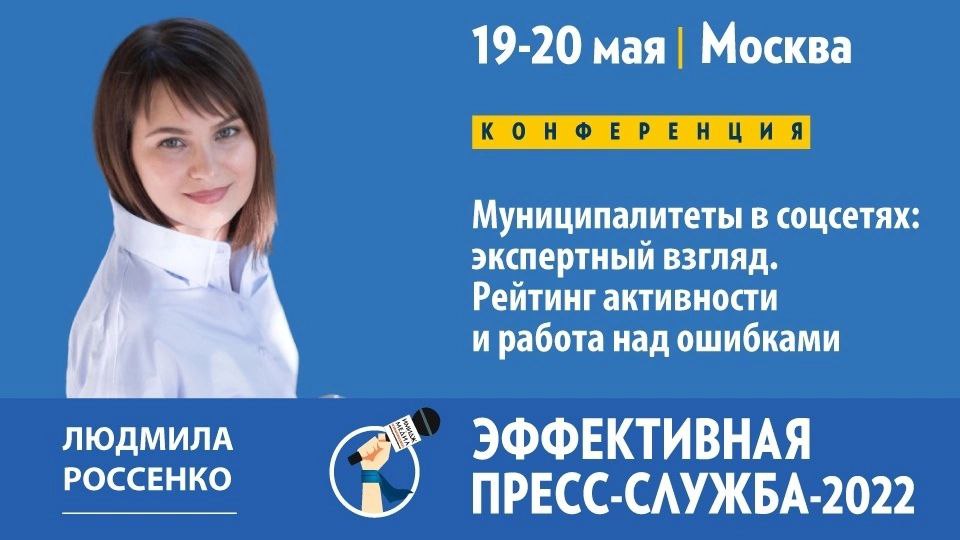 В Москве завершилась большая ежегодная конференция «ЭФФЕКТИВНАЯ ПРЕСС-СЛУЖБА – 2022». Как вы помните, я там отметилась с мастер-классом на тему «Муниципалитеты в соцсетях: экспертный взгляд. Рейтинг активности и работа над ошибками». Самое время поделиться впечатлениями!