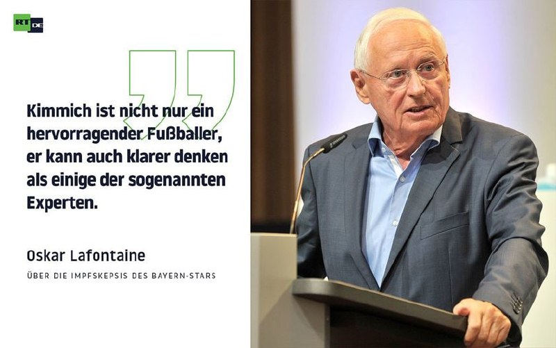 Seit Tagen ist die Debatte um die Impfskepsis des Bayern-Stars Kimmich entbrannt. Nun hat sich auch Oskar Lafontaine auf Facebook zur laufenden Diskussion eingeschaltet. Kimmich habe recht mit seiner Skepsis gegenüber den Impfstoffen, was die Langzeitfolgen betreffe. "Man muss noch nicht mal die Fälle kennen, in denen Langzeitfolgen von Impfungen beobachtet wurden, es genügt, aus den Verträgen, die mit den Impfstoff-Herstellern Biontech/Pfizer geschlossen wurden, zu zitieren", schreibt Lafontaine. Der Linken-Politiker fordert außerdem, neben den mRNA-Impfstoffen auch "Totimpfstoffe" zuzulassen.