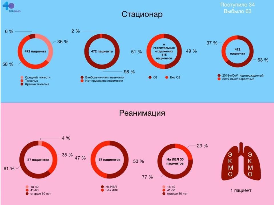 На лечении в инфекционной клинике находятся 472 человека, у 63% из них подтверждён диагноз COVID-19, говорится в опубликованной Проценко инфографике