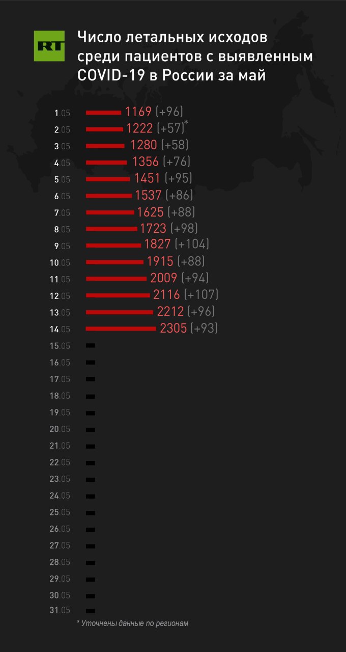 ⚡️В России за сутки скончались 93 человека с коронавирусом, за всё время пандемии — 2305, сообщили в оперативном штабе.