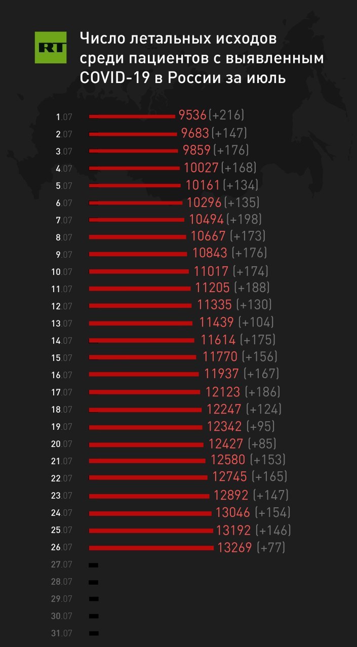 За сутки +77, накануне было +146. В стране в общей сложности скончались 13 269 человек с коронавирусной инфекцией.
