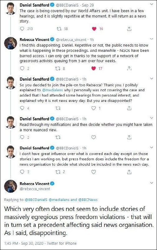 Ребекка Винсент, директор британского бюро «Репортёры без границ», написала в своём Twitter Дэниелу Стэнфорду, что находит это «разочаровывающим».