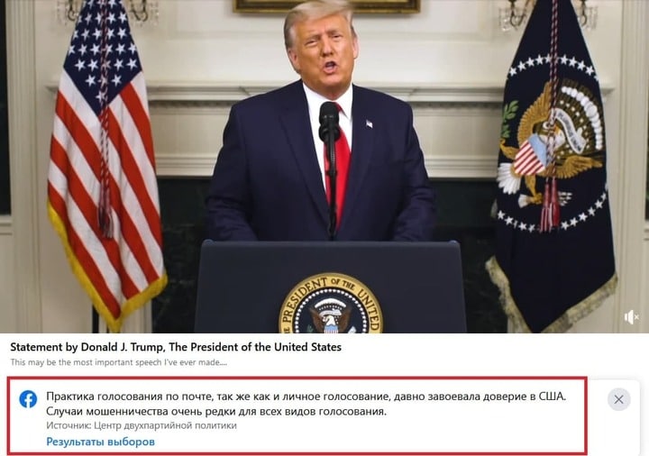 Facebook же оставил под роликом пометку: «Практика голосования по почте, так же как и личное голосование, давно завоевала доверие в США. Случаи мошенничества очень редки».