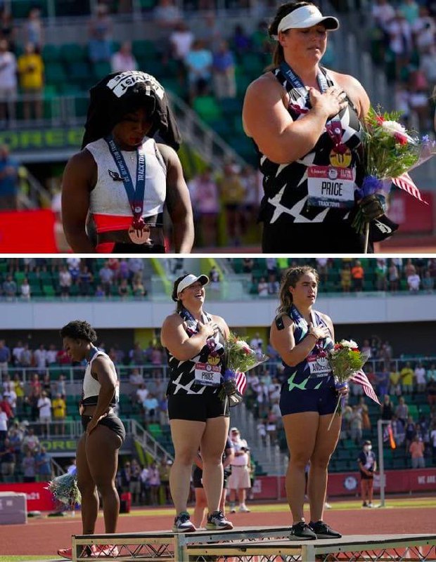 Метательница молота Гвен Берри взяла бронзу на соревнованиях в Орегоне и прошла отбор на Олимпиаду в Токио. Во время исполнения гимна США она отвернулась от флага, а позже накинула себе на голову футболку с надписью «Спортсмен-активист».
