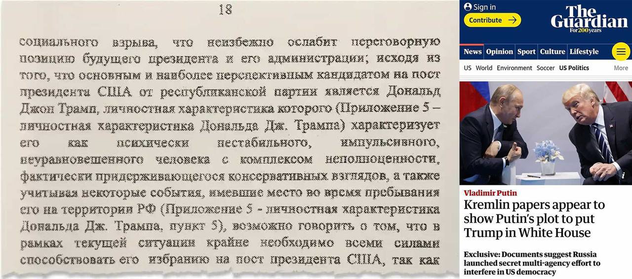 The Guardian опубликовала очередную статью о якобы тайном плане Кремля сделать президентом Трампа в 2016 году. И даже приложила «документы».