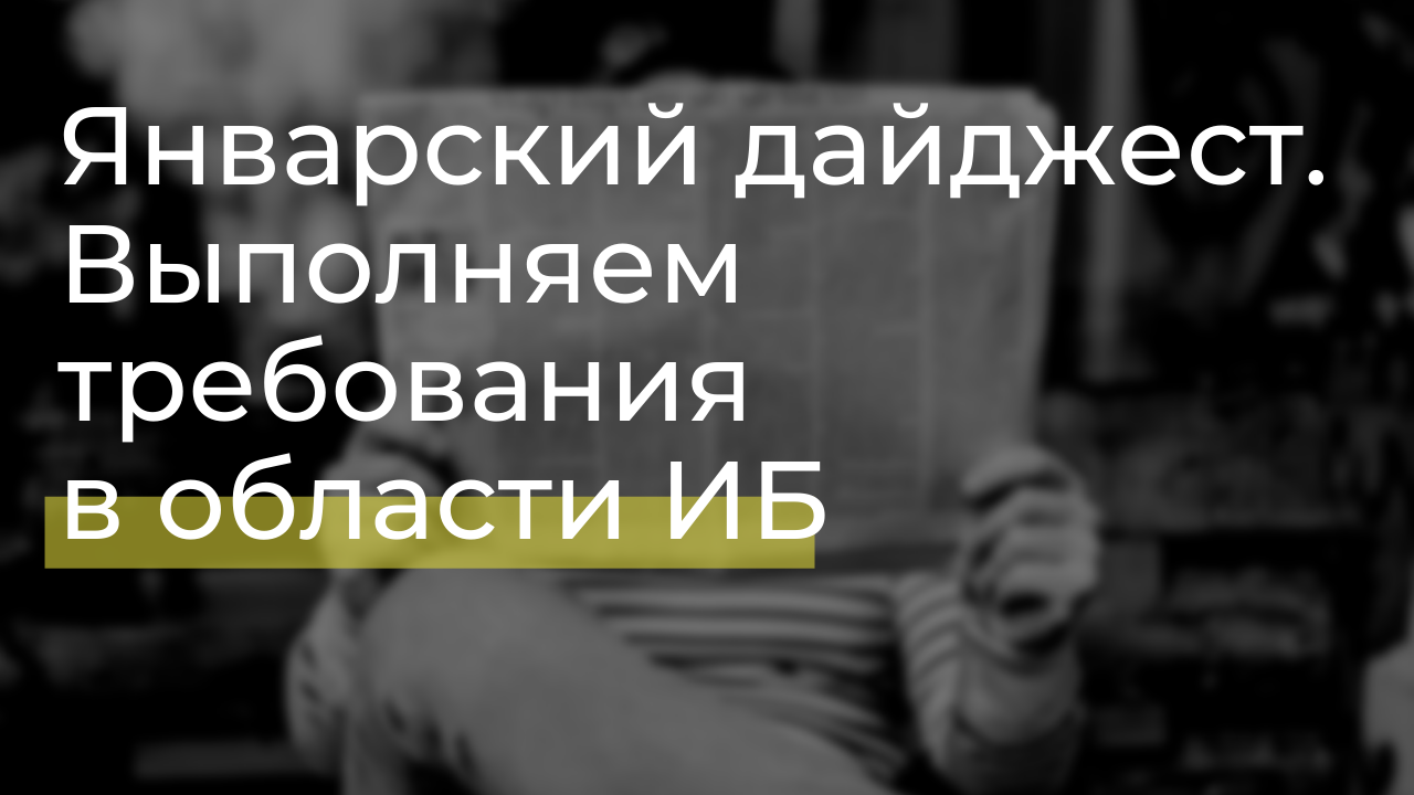 Пришли к вам со свежим дайджестом и принесли все наши новости в области информационной безопасности за январь. Тут всё, чтобы вы могли выполнить требования регуляторов и законодательства быстро и без лишних трудозатрат: