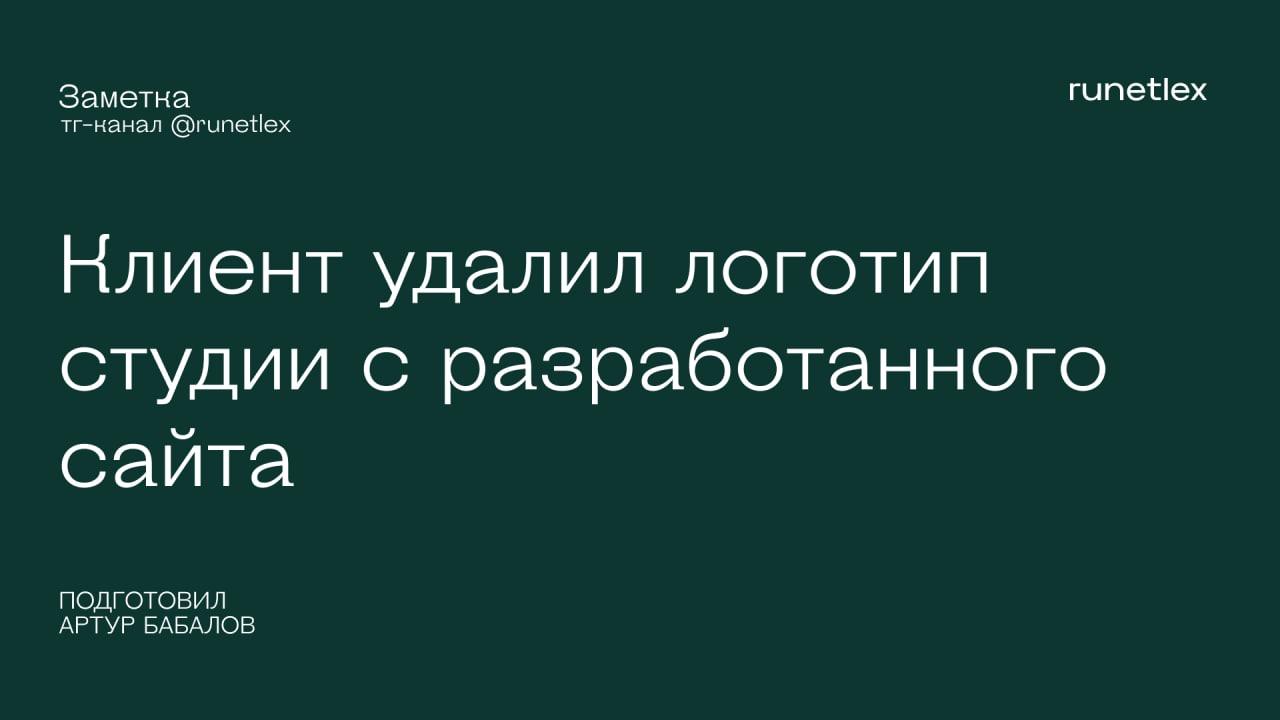 Через некоторое время студия обнаружила, что клиент удалил их логотип и гиперссылку на сайт.