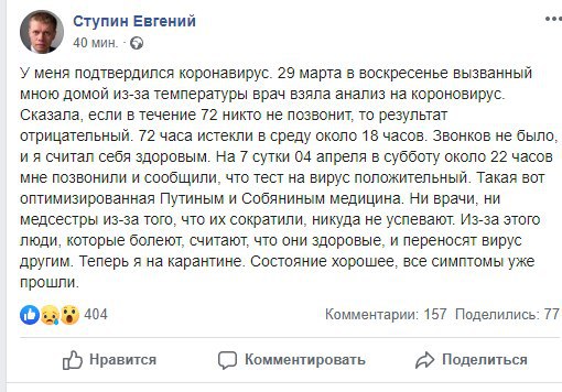 У депутата Мосгордумы фракции КПРФ диагностировали коронавирус. Согласно доступной информации, политик не покидал территорию РФ, в период пандемии, значит заражение произошло, от переносчика, внутри страны. Интересненькое дельце.