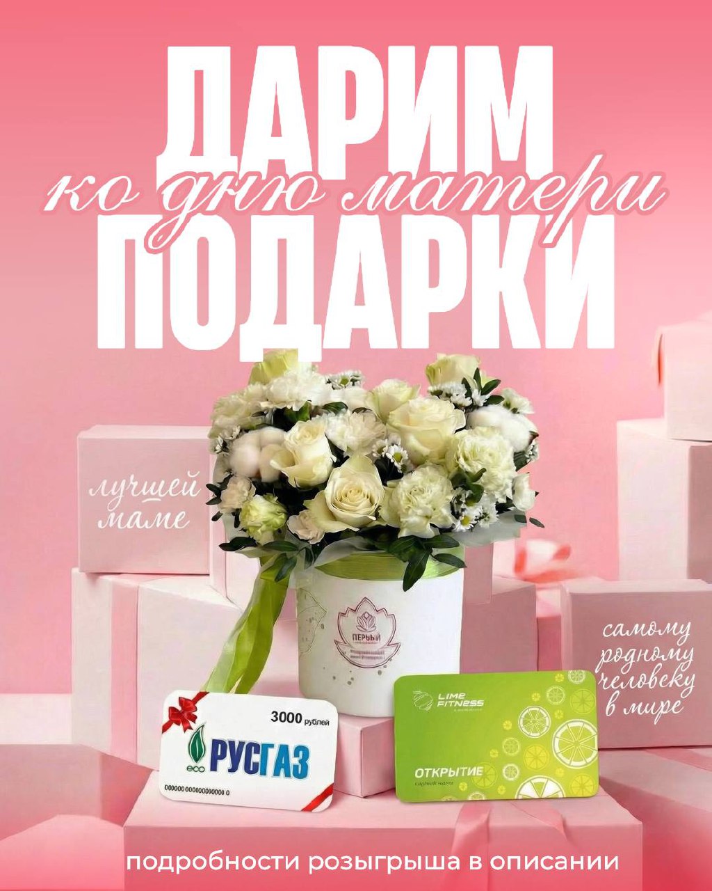 Давайте вместе сделаем День мамы ещё более трогательным! Примите участие в розыгрыше и выиграйте подарки, которые скажут о вашей любви без слов. 🌷