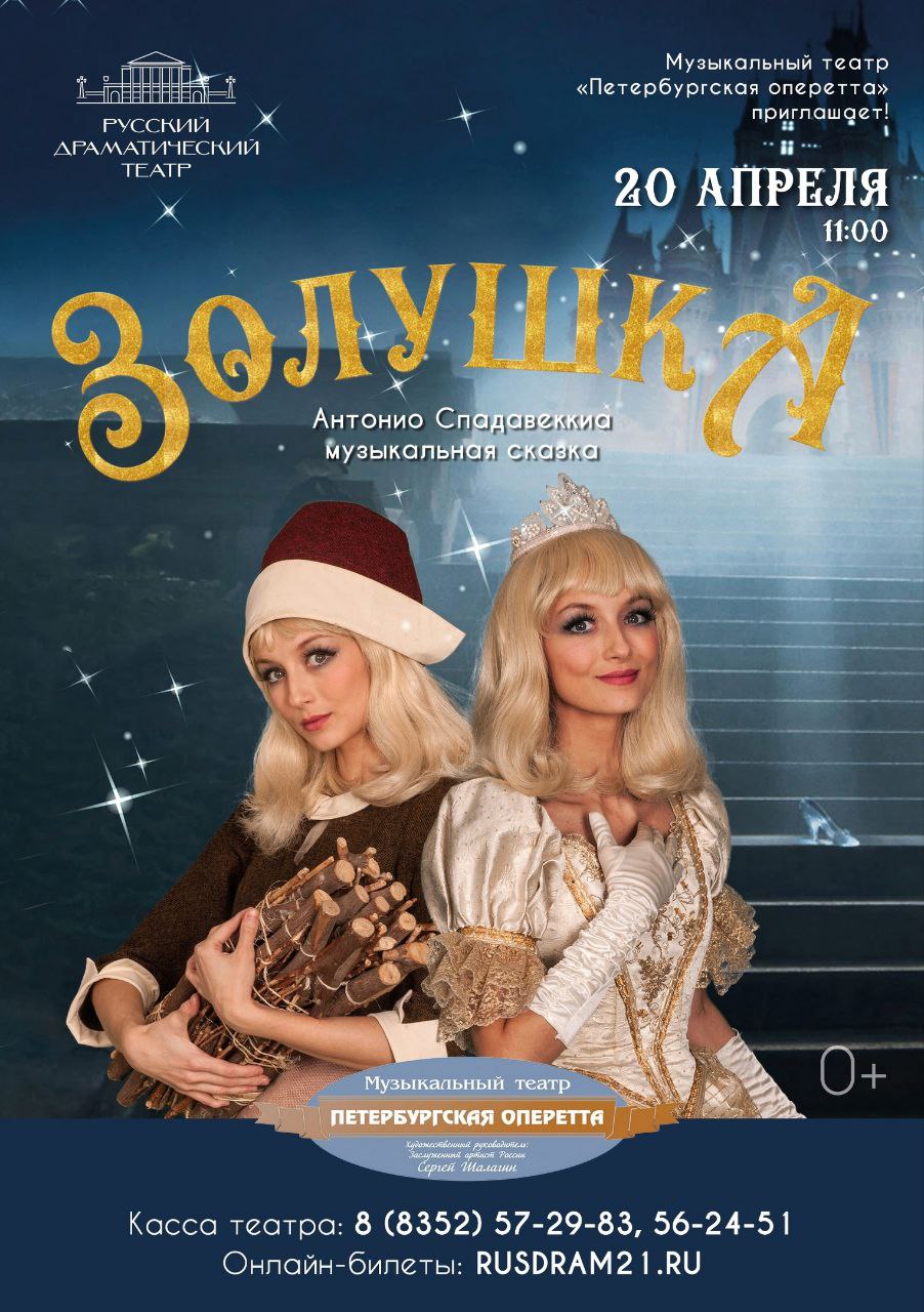 Счастливчику подарим 2 билета на музыкальную сказку «Золушка», которая пройдет 20 апреля на сцене Русского драматического театра.