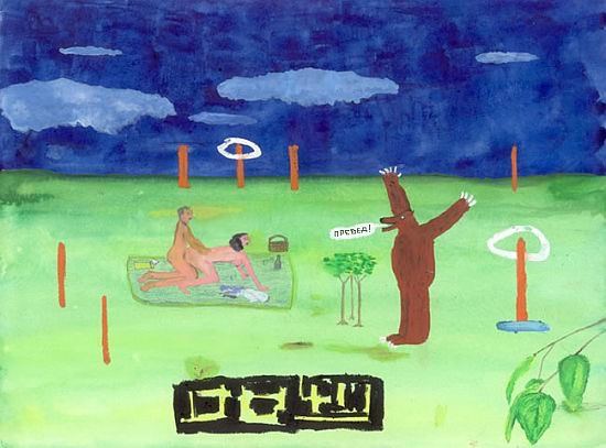Загвоздка в том, что изначально это акварель Джона Лури, — культового художника-примитивиста, который совершенно не имел в виду ничего меметичного. Его мир — это умиротворенное созерцание природы, поиск нужного цвета, послеобеденный сон, молчание, наблюдение, тихий разговор.