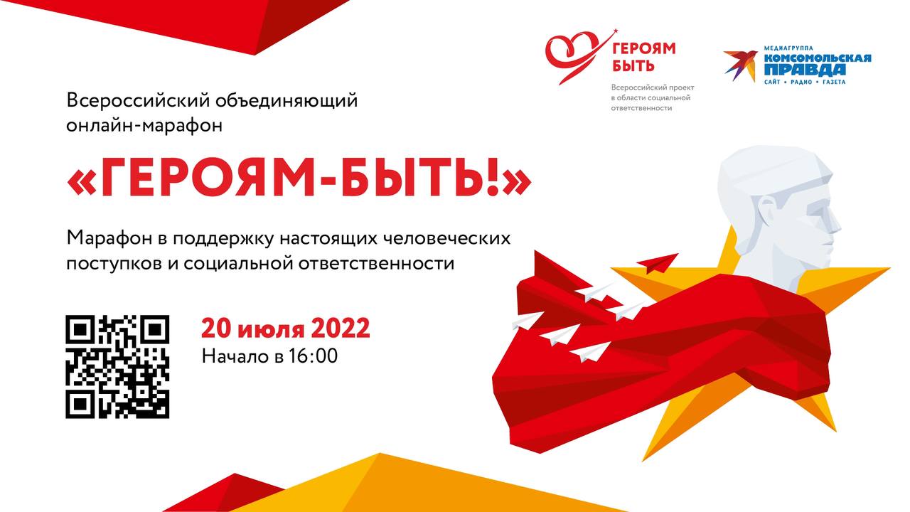 20 июля состоится Всероссийский объединяющий онлайн-марафон «Героям – быть!» в поддержку настоящих человеческих поступков и социальной ответственности.