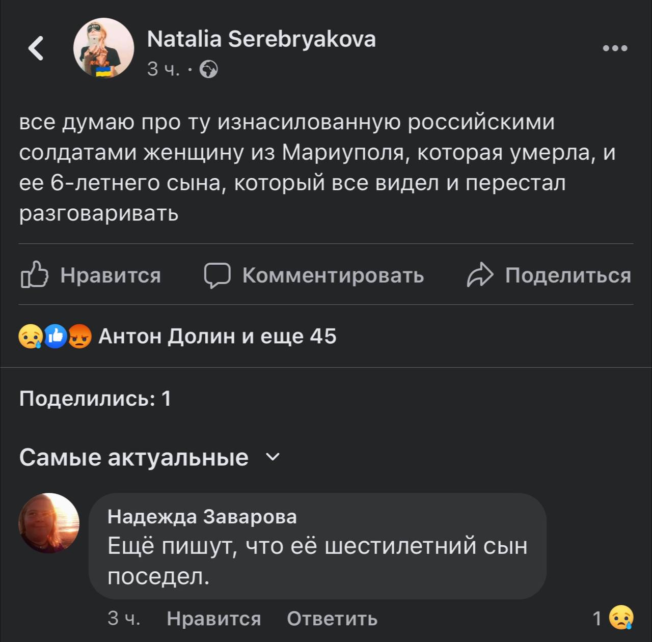 Тяжелый репортаж у Елены Костюченко вышел.