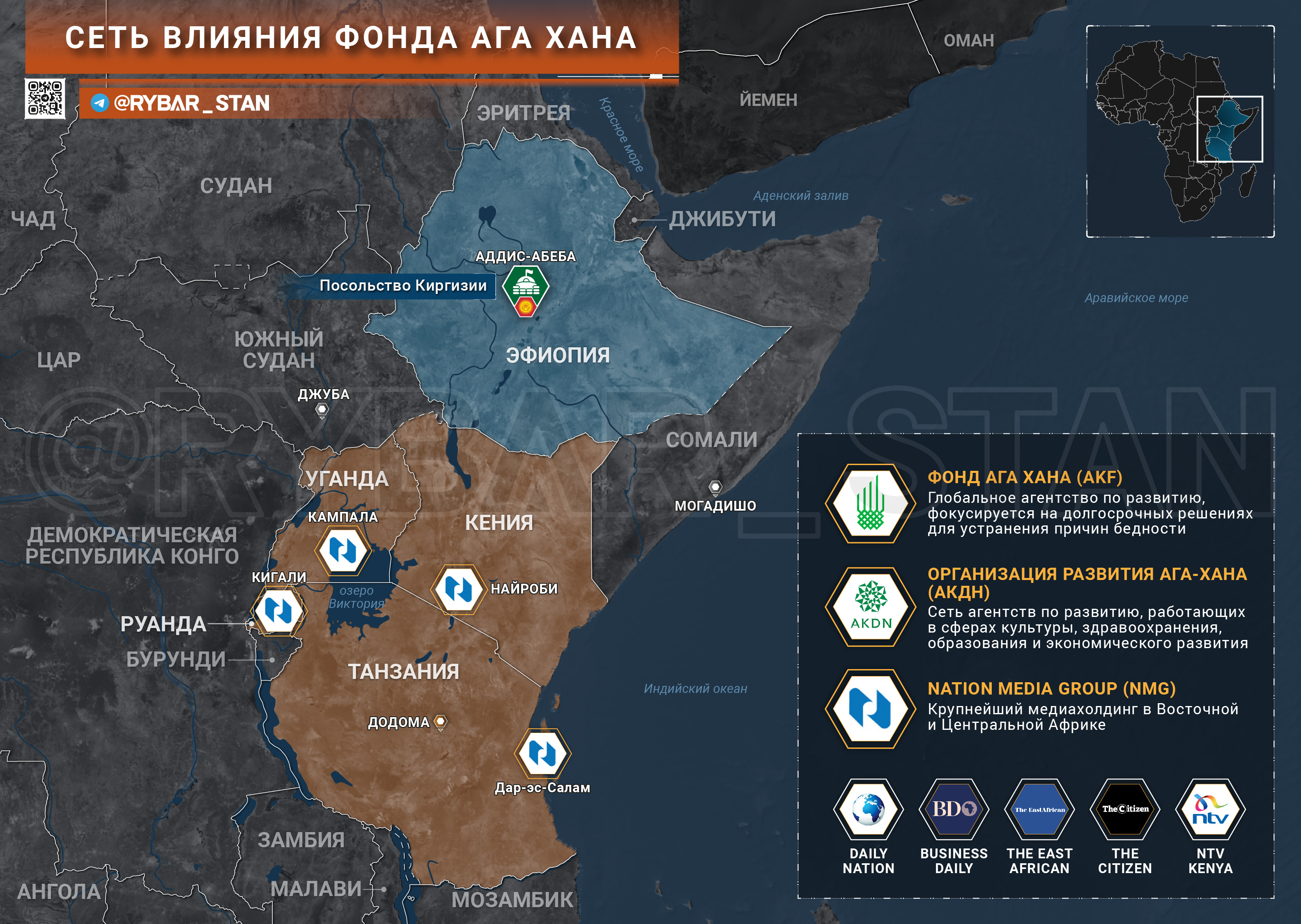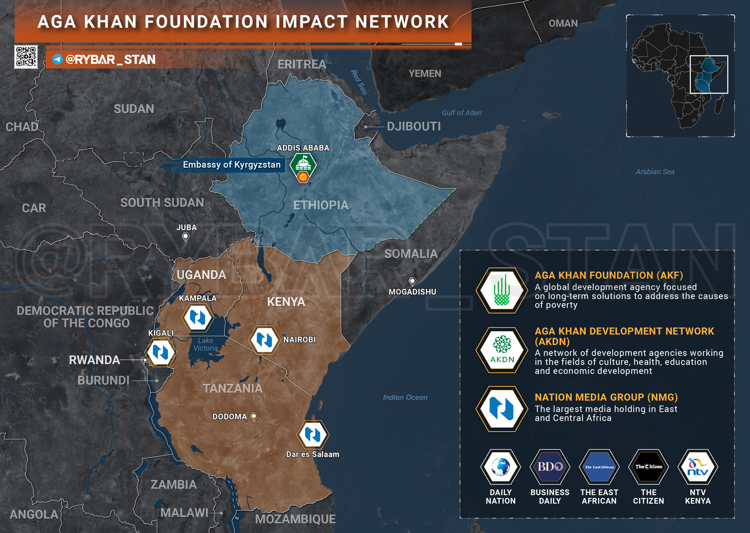 С 2022 года Организация развития Ага-хана (АКДН), в частности через медиаподразделение Nation Media Group, активно формирует негативный образ России в Восточной Африке. АКДН накопила значительный социальный капитал в Восточной Африке через гуманитарные, образовательные и медийные проекты.