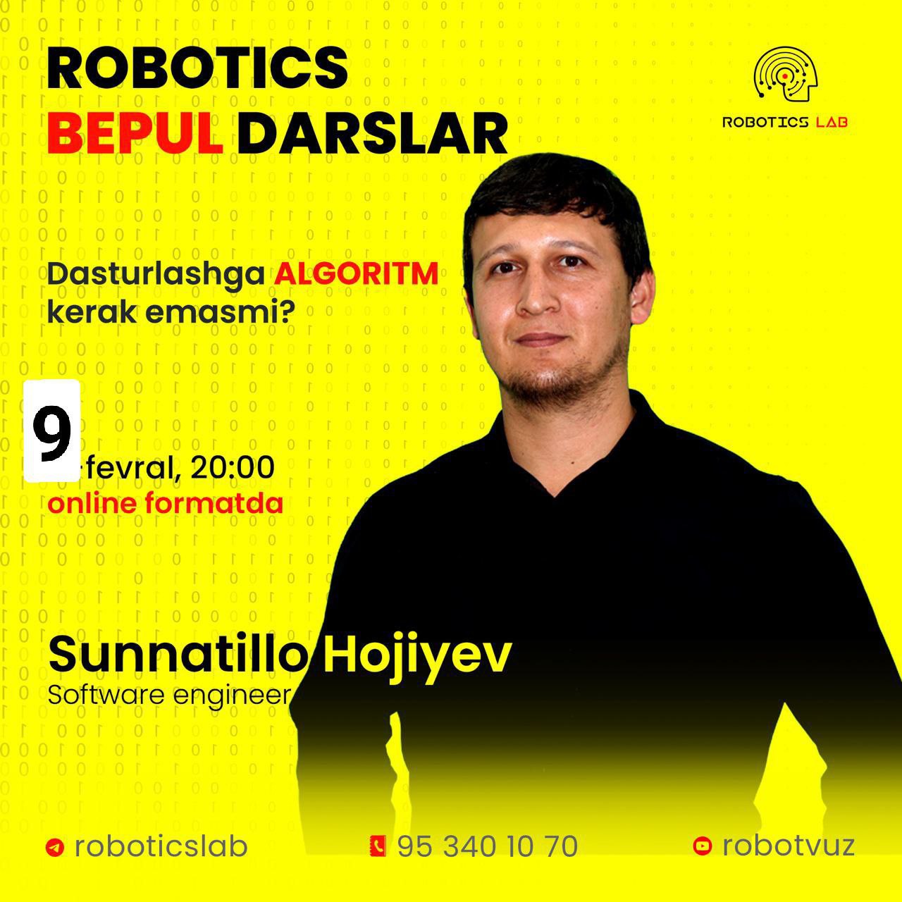 👨💻 Bugun bo’ladigan navbatdagi online ochiq darsimizda Sunnatillo Hojiyev, Algoritmga oid bo’lgan barcha savollaringizga javob beradilar.