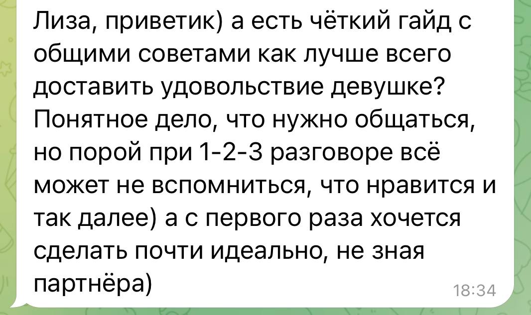 Поэтому выкатить универсальную и подробную инструкцию, подходящую всем, невозможно – для этого нужно хорошо и лично знать участников беседы. Но я решила собрать несколько правил, приёмов и трюков, которые могут облегчить интимный разговор.
