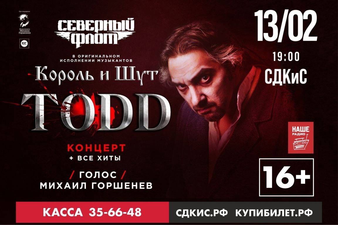 «TODD» – последнее творение Михаила Горшенёва и музыкантов «Король и Шут», двойной альбом, объединённый общей историей о цирюльнике Суинни Тодде, на основе которого был поставлен знаменитый мюзикл. В 2021 году музыканты групп «Король и Шут» и «Северный Флот» осуществили давнюю мечту Михаила и представили масштабный концерт «TODD», в который вошли все лучшие песни с двух последних альбомов легендарного коллектива, исполненные музыкантами в оригинальном звучании, как они и были задуманы.