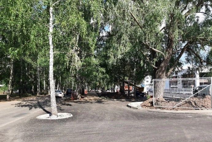 В компании подошли к данному вопросу с изрядной долей «креатива», и, что неудивительно, в ущерб экологии. Строители покусились на вырубку деревьев на близлежащих земельных участках и в определенных местах добились своего – часть здоровых многолетних деревьев уже вырублена. Там же, где добиться разрешения на вырубку не получилось, рабочие просто закатали деревья в асфальт. По словам местных жителей, строители немерено «испортили» часть деревьев, чтобы признать их аварийными. Та же участь, с течением времени, постигнет и забетонированные деревья, которые попросту погибнут, находясь под асфальтом на парковочной территории.