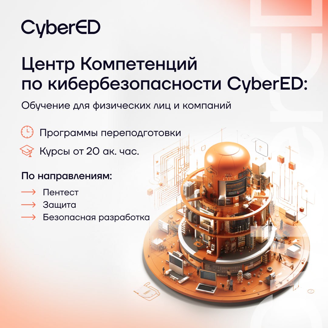 🛡CyberEd разрабатывает образовательные программы и обучает с нуля специалистов в области пентеста, защиты, безопасной разработки, организовывает площадки для проведения CTF.