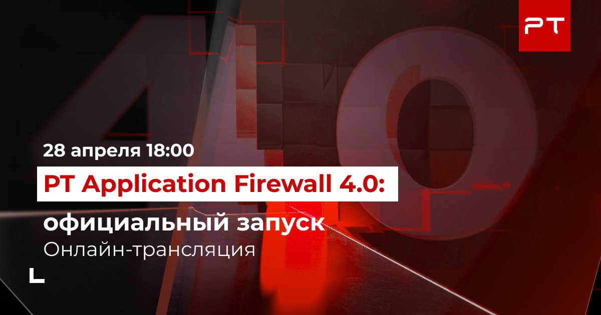 Во вторник 28 апреля в онлайн-конференции Positive Product Update мы представим новую версию PT Application Firewall. Теперь масштабирование PT Application Firewall возможно под любую нагрузку — от сайтов-визиток до высоконагруженных систем федерального масштаба. Упрощенные режимы интеграции позволяют добавлять новые приложения в два клика, а алгоритмы глубокого машинного обучения способны выявлять неизвестные угрозы. Покажем, в чем отличия версии 4.0 и какие задачи она может решать.Также в программе интервью с экспертами Positive Technologies и клиентами компании: обсудим рынок web application firewall и тренды атак на веб-приложения.