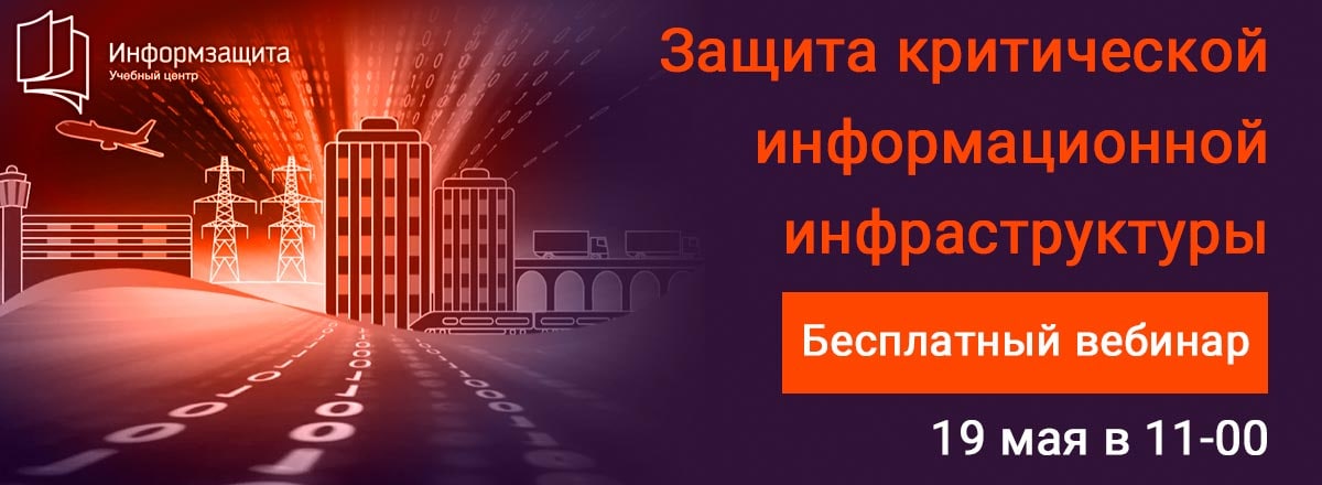 🏭19 мая Учебный центр «Информзащита» проведет бесплатный вебинар «Защита критической информационной инфраструктуры». Вебинар посвящён программе повышения квалификации, согласованной ФСТЭК России «Обеспечение безопасности значимых объектов критической информационной инфраструктуры», позволяющей выполнить требования регулятора по защите КИИ на 5 лет.