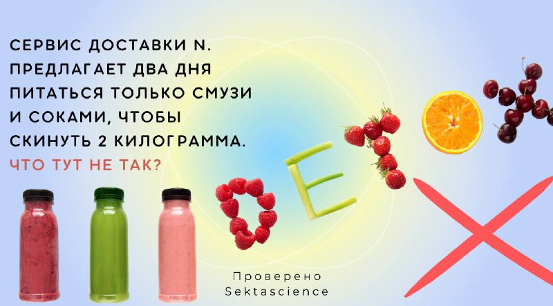 🤧Детокс-диеты — маркетинговый миф, а не безопасный инструмент по снижению веса. Если у вас нет серьёзных заболеваний, ваше тело самостоятельно справляется с «выводом токсинов» благодаря печени, кишечнику и почкам. Не существует волшебных напитков, которые смогли бы выполнить эту работу лучше нашего организма.