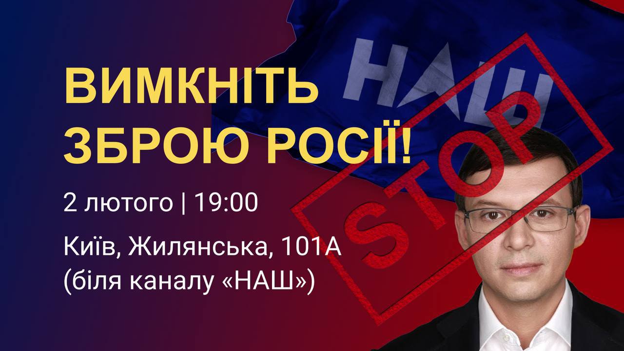 Друзі, завтра, 2 лютого о 19:00 відбудеться мирна акція біля каналу російського агента Мураєва «Наш».