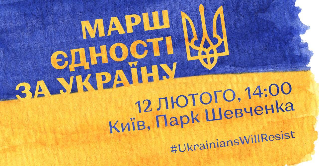 Вже завтра, 12 лютого о 14:00, у Києві відбудеться Марш єдності за Україну.