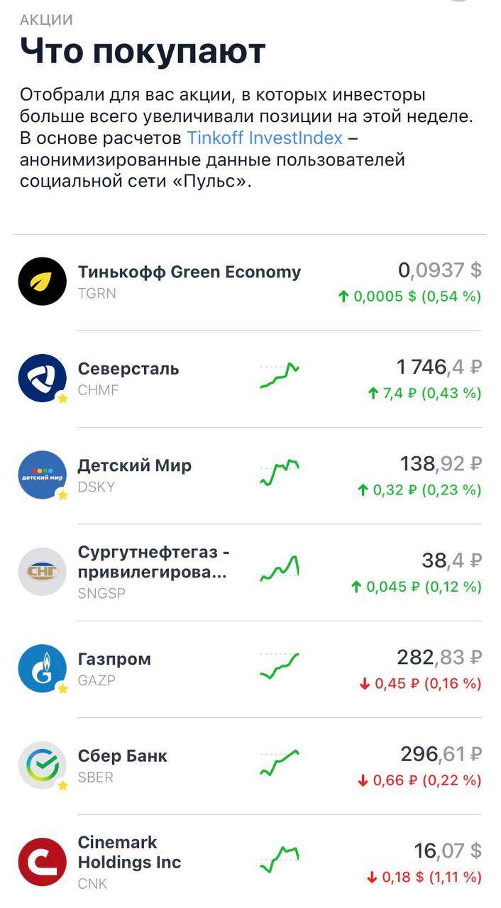 📈 «Северсталь» в списке акций, в которых инвесторы «Тинькоф Инвестиции» больше всего увеличили свои позиции на этой неделе.